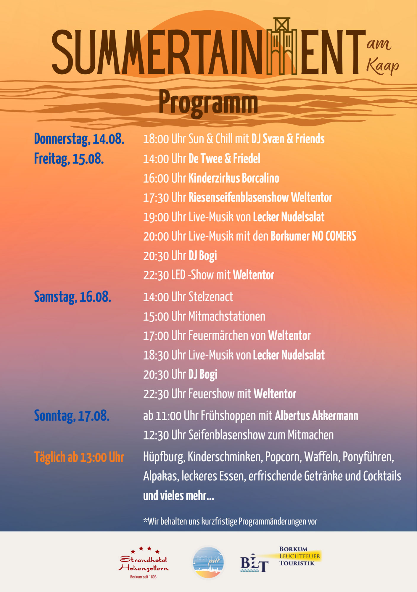 Then visit our Summertainment on the Kaap – and experience Borkum at its liveliest!